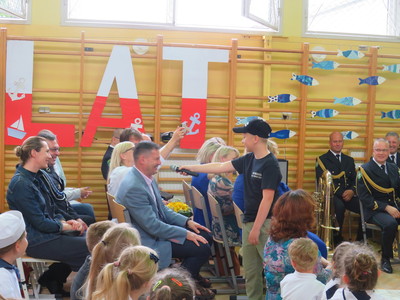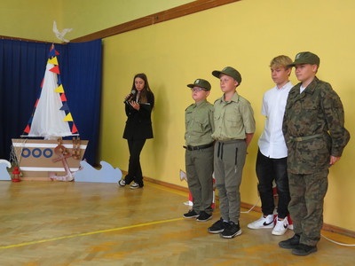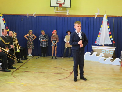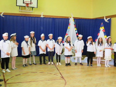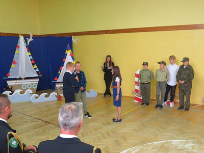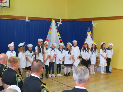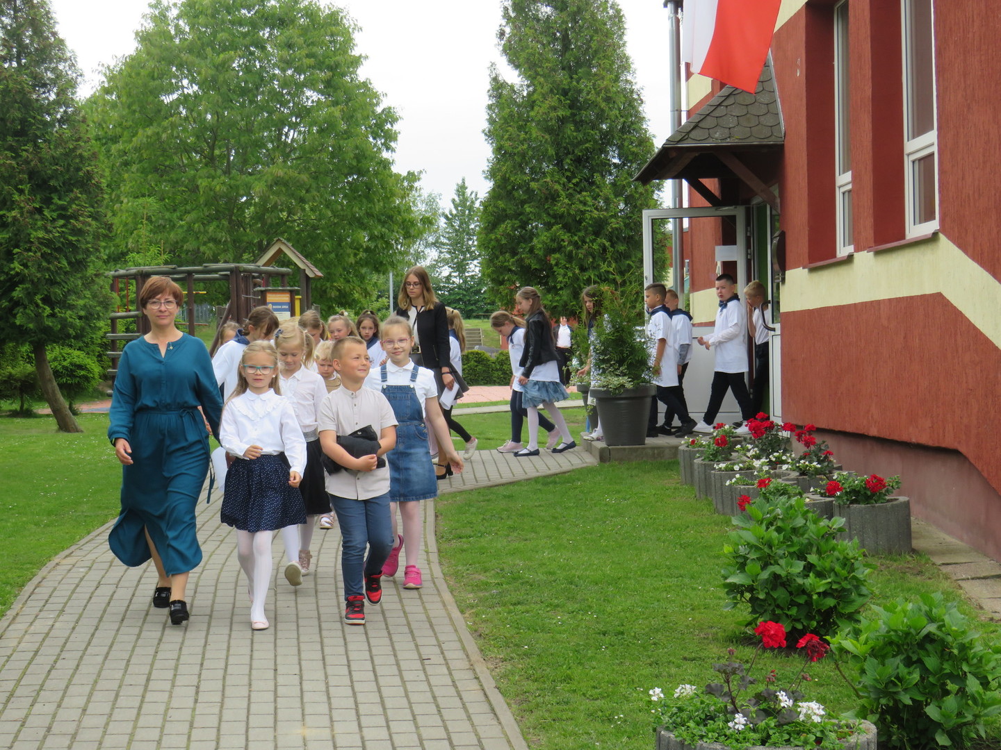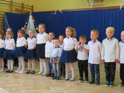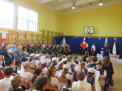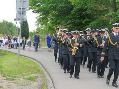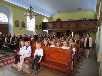 Dzisiejsza uroczystość rozpoczęła się mszą świętą w kościele pw. Najświętszego Serca Pana Jezusa w Łęczu. Oprawę muzyczną zapewniła Orkiestra Morskiego Oddziału Straży Granicznej z Gdańska. Po mszy świętej wszyscy udali się do szkoły na uroczysty apel. Czas umilały nam występy dzieci z naszej szkoły.