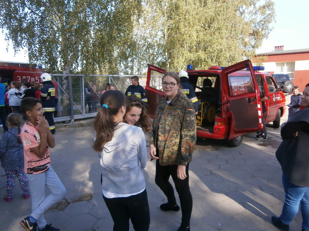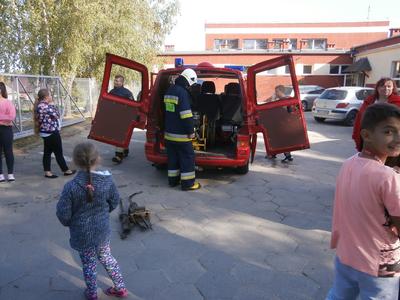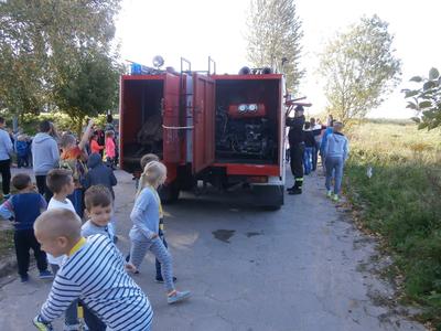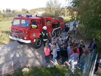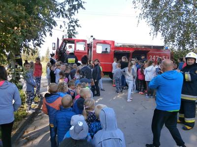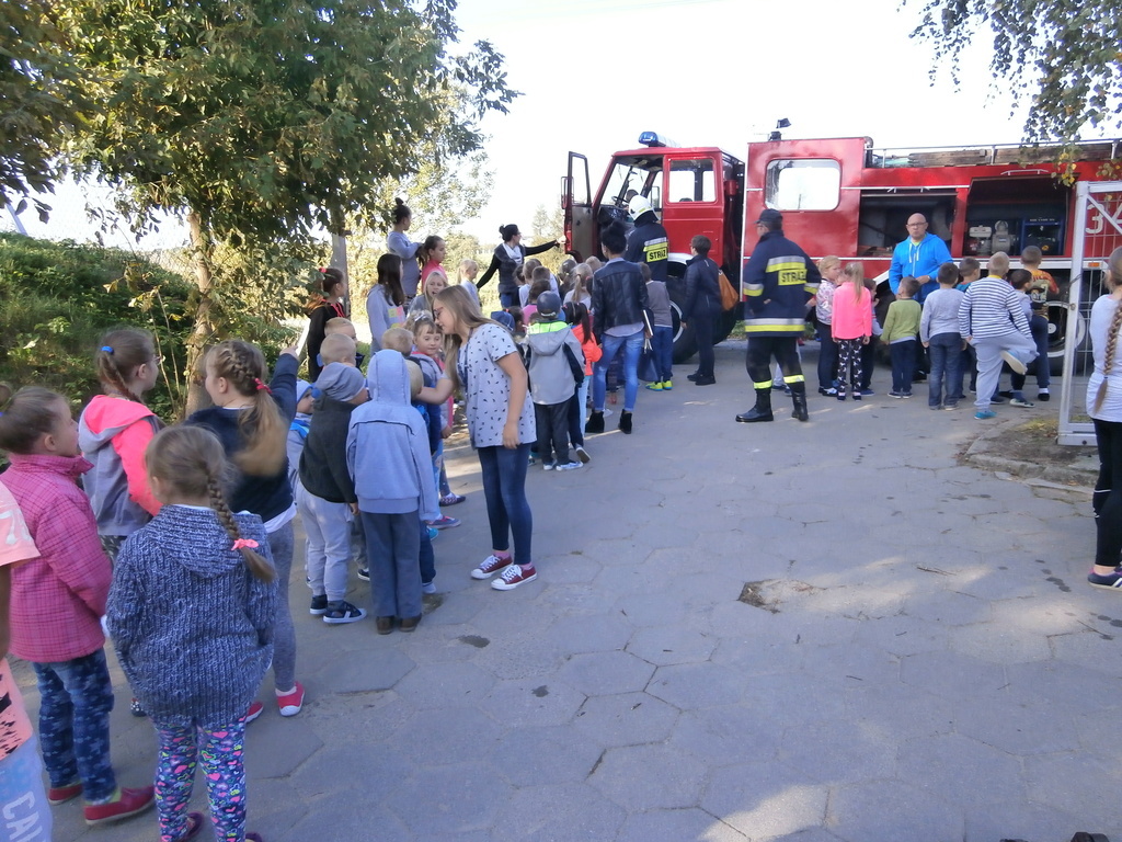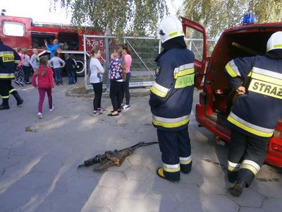 Na szkolnym boisku czekały na nas samochody Straży Pożarnej OSP Łęcze.