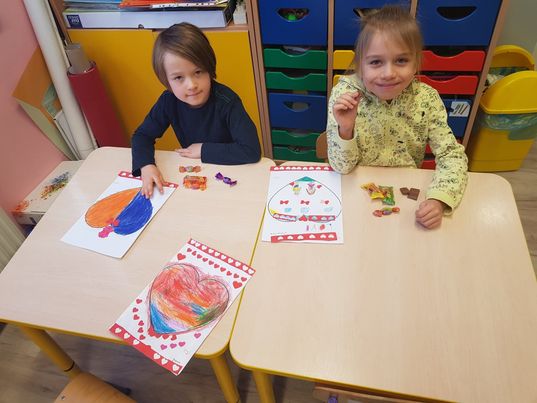 Święto zakochanych zajmuje bardzo ważne miejsce w kalendarzu uroczystości przedszkolnych. Walentynki to wyjątkowy dzień, świętowany przez dorosłych, ale również przez dzieci. Dla najmłodszych stanowi symbol przyjaźni, relacji międzyludzkich oraz radości wspólnego przebywania. Przedszkolaki własnoręcznie wykonały kartki walentynkowe, które sprawiły wiele radości. Jedni wręczyli sobie nawzajem, inni zabrali do domu, aby wręczyć najbliższym.