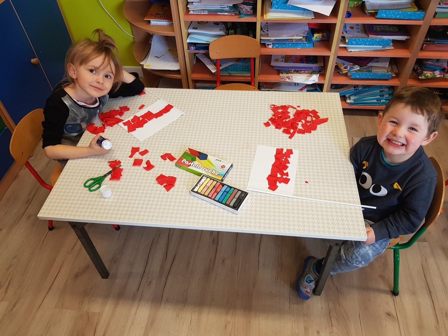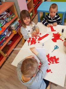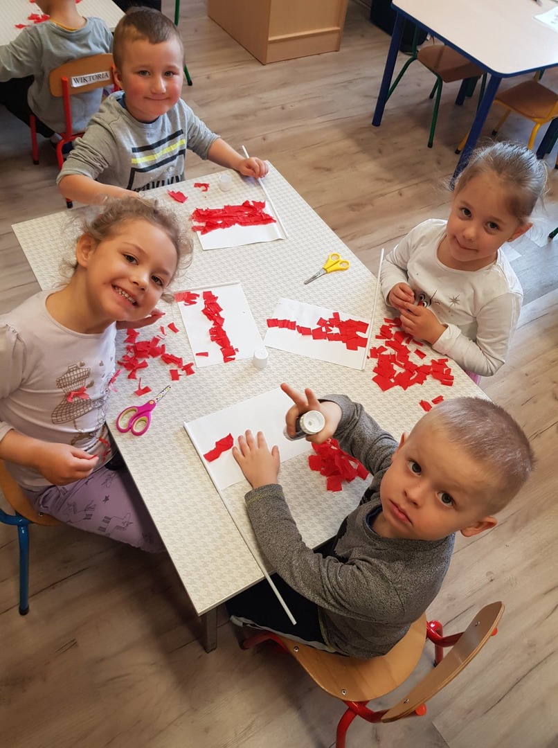 Przez ostatni tydzień przedszkolaki wysłuchały nie tylko legend związanych z historią naszego kraju, ale również obejrzały projekcję filmu o powstaniu państwa Polskiego. Wykonały symbole narodowe z wykorzystaniem różnorodnych technik plastycznych.